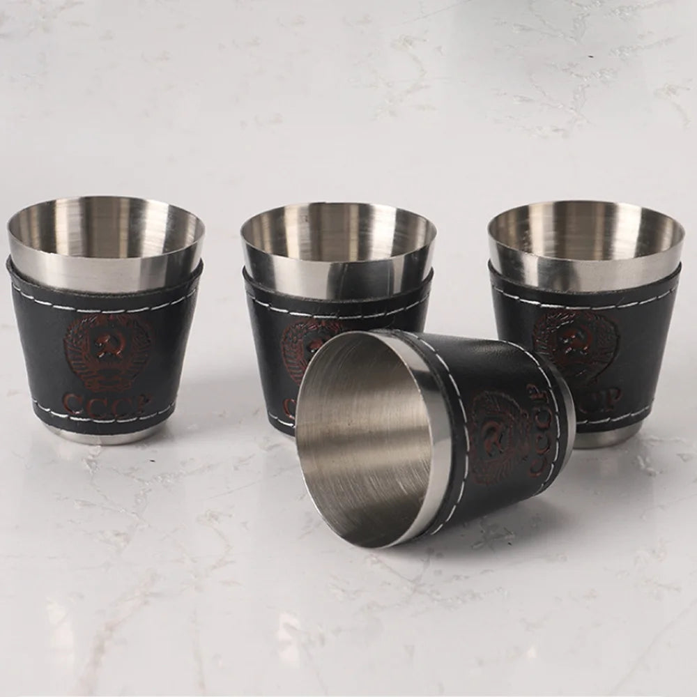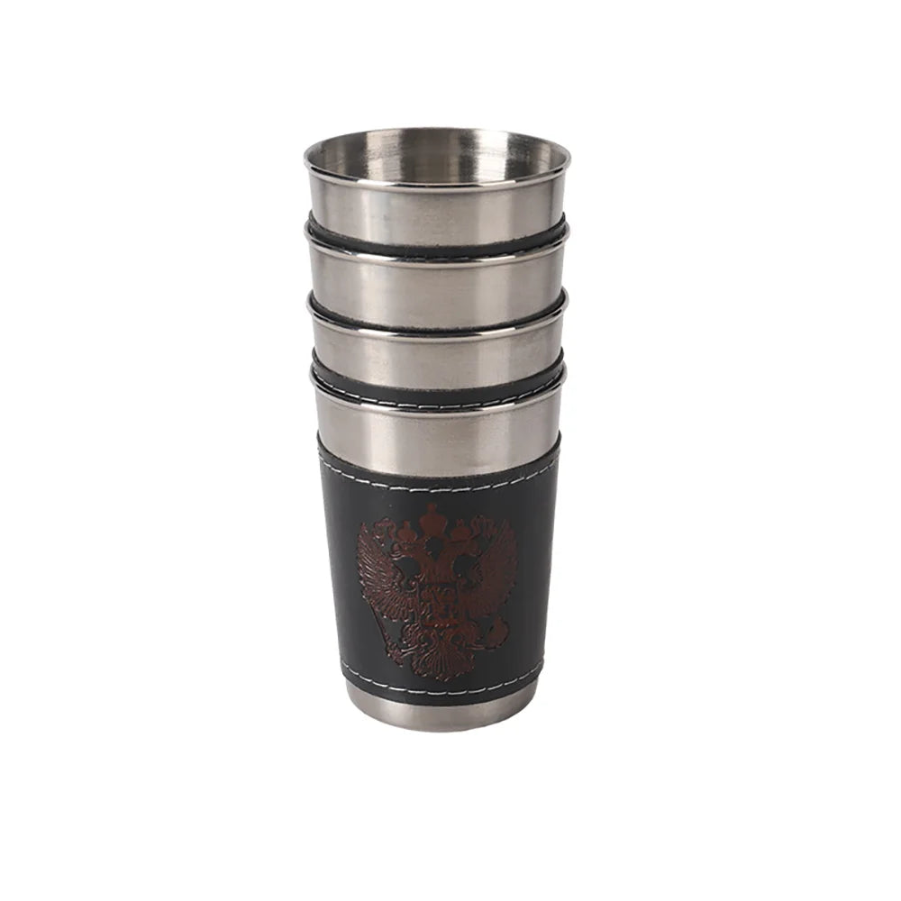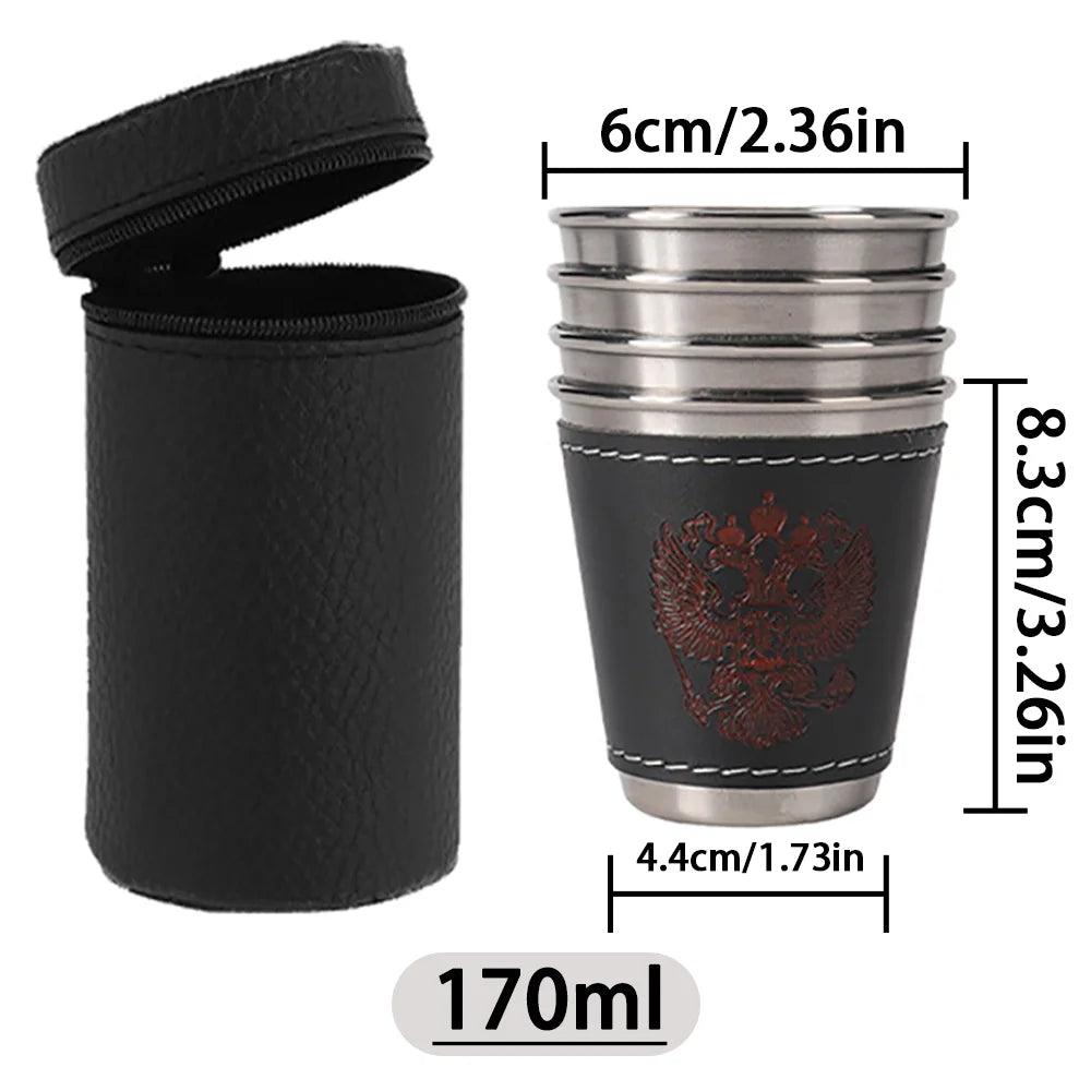 סט כוסות נירוסטה איכותיות ועמידות, מגיעות בנרתיק יוקרתי ונוח לנשיאה.
